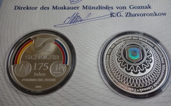 | The heads of national mints around the world converged on Mexico City from May 11 to 17 for the 28th Mint Directors Conference. The experts discussed such topics as new alloys, colored coins, and ways to enhance counterfeit protection. The itinerary also included a visit to the Mexican Mint facility in San Luis Potosí, where several dozen Schuler machines produce pesos and centavos of various denominations.  In addition to blanking lines, edge-lettering and rimming machines, as well as numerous coining presses, the facility also boasts one very special machine: a specially equipped MRV 300. It is the first coining press to produce so-called tri-metal coins. In contrast to the one and two euro coins, for example, tri-metal coins not only have one ring around the core, but two. The machine has a vertical design and can join and mint coins in a single operation. Amongst other things, the Mexican Mint uses the Schuler MRV 300 with an output of up to 500 coins per minute to produce a medal to commemorate the Mayan culture. A further topic of the conference - which Schuler sponsors - was how tri-metal coins could also be used as circulation coinage to raise counterfeit protection, for example. |