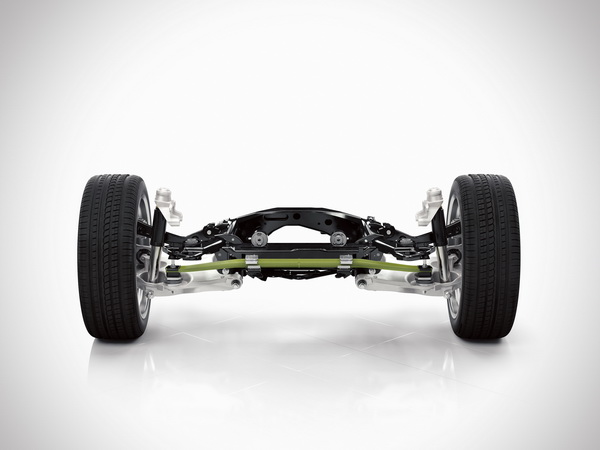 Fig. The rear axle of the new Volvo XC90 features a new transverse leaf spring, made of lightweight composite material.