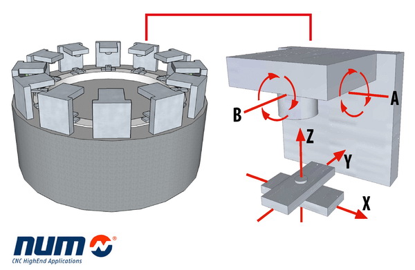 October 5, 2015 - NUM has launched an innovative new CNC axis sharing facility that will enable designers to create machine tools of unprecedented versatility and productivity. It provides a very flexible and efficient means of controlling a high number of functionally interrelated groups of motion axes, by using advanced dynamic resource allocation techniques to share control across multiple CNC kernels. Typical applications include multi-station production centres and rotary transfer machines with complex multi-role axis control requirements.
