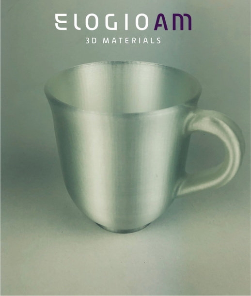 3D printed coffee cup model from Facilan HT. (Photo: ElogioAM) "Excellent technical support from the Elogio team, Facilan HT is as easy to print as PLA, with a good level of translucidity, perfect for our prototyping needs", says Matthew Forrester, 3D printing Tech leader L`Oréal, France.