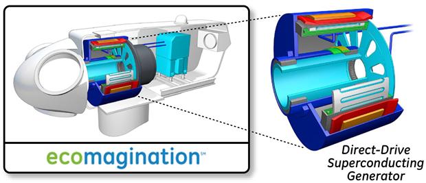 A concept drawing of a direct drive wind generator using superconducting magnet technology The next generation wind turbine generator project and other advanced technologies for wind are closely aligned with GE's ecomagination initiative. Ecomagination represents the company's commitment to deliver new clean products and technologies to market that help solve our toughest environmental challenges.