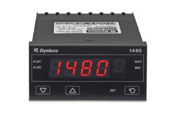 The new 1480 1/8-DIN Panel Indicator from Dynisco displays strain-gauge, voltage, current, thermocouple or RTD inputs, which makes it perfect for use on plastics extrusion equipment. The universal pressure or temperature input indicator can be configured with single or dual alarms for high/low process variables, and optional linear retransmission of the displayed process reading.