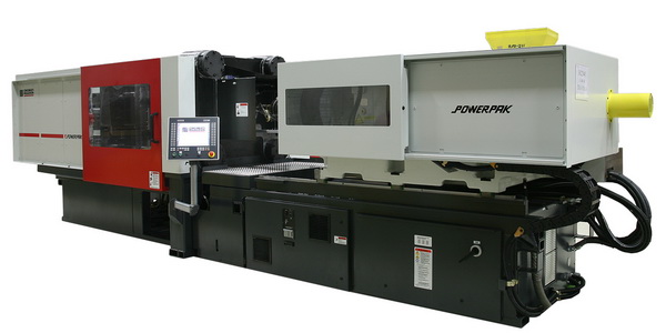 The PowerPAK, now available with clamping forces from 440 to 1,125 tons, has a selectable axis configuration (SAC) with an option of all electric on all four machine axes (clamp, injection, ejection, extruder), or as a combination of the ejector or injection axes as hydraulic. The clamp and extruder remain "all electric" on all model configurations.