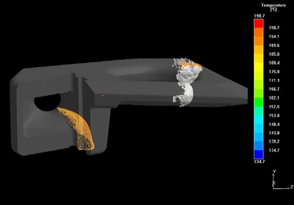 Figure 1 - The tracer technology in SIGMASOFT® allows visualizing the fully 3D profile of weld lines over the part thickness. With SIGMAlink this information can now be mapped into structural FEA.