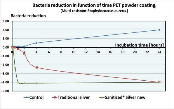 The new Sanitized® silver-based antimicrobials are unique in the speed at which they become active in combination with low application concentrations; contributing factors to the additives' excellent price/performance ratio. The patented technology of silver encapsulated in a glass ceramic material, in combination with a low particle size of the product, delivers one of the highest levels of transparency which, when used in coatings, means quality and aesthetics of the end-use application are not compromised. This technology is effective against a large number of bacteria and remains stable at temperatures up to 500⁰C - far beyond any organic active compounds.