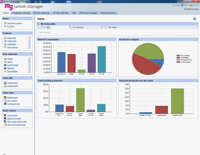 Lantek Manager screen