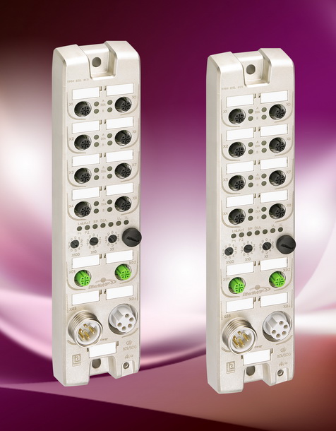 To avoid confusion, both the I/O connectors and the network ports are color-coded. IP addresses are set up using rotary switches. Both modules are configured directly via the user interface of the control unit. The easy diagnostics concept allows precise channel and bus diagnosis.