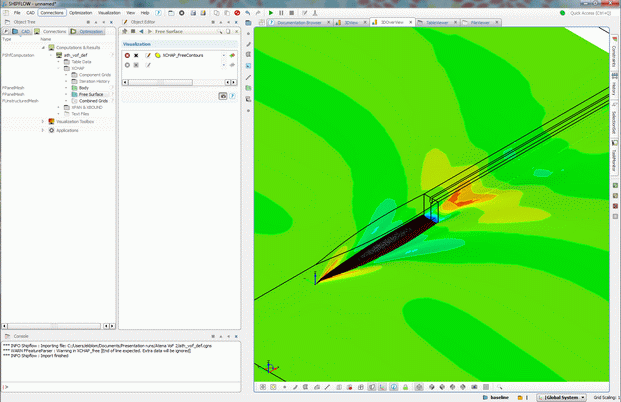 A major update is also the much improved SHIPFLOW Design. This new version of SHIPFLOW Design is based on Friendship Framework 3.0 which is also a new major release. Full post processing within SHIPFLOW Design is the big news. This means no more switching programs in the middle of the work process. It allows the user to stay within the same user interface for the complete hydrodynamic design and optimisation process. Other minor developments are for example an even more capable fully automatic iges import which can handle also twinskeg hulls. There is no more need to manually create offsets, just specify what IGES-file to use and SHIPFLOW handles the rest.