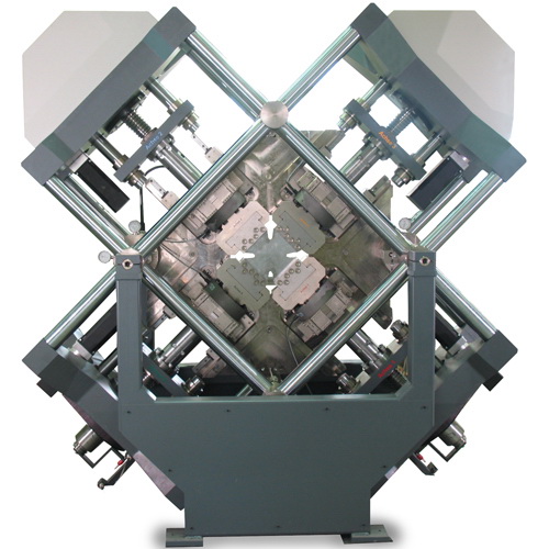 Biaxial testing machines with electrical synchronization are used for 2-axis tensile tests on metal specimens. They are equipped with two load frames, angled at 90º to each other, and each fitted with two central lead screws.
