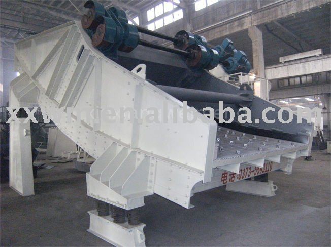Banana vibrating screen , the shape of whose screen box is just like a banana, is a linear vibrating screen with a box type exciter, and the screen deck divide into several zones with different dip angles. From the feed end to the discharge, the ratio of materials quantity and flow speed on different zones is stable. Compared with common vibrating screen, the handing capacity can increase by 1.5 to 2 times, it is excellent for medium and fine size materials.