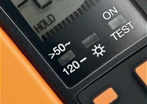 A two-way button is used to activate a load which can trigger a 30-mA RCD circuit breaker or prevent inductive reactive power. This prevents the RCD circuit breaker from being triggered accidentally during a test. Ergonomic design
