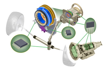 angle sensor, angular position sensor, angular sensorAllegro is developing a new family of angle sensor ICs that is based upon a technology that achieves high resolution and very fast response times. By using a single channel angle sensor signal to measure direction of magnet rotation, in plane with the silicon IC, Allegro's angle sensor ICs reduce customer trimming and eliminate the need for matching sine/cosine signals, while at the same time reducing air gap dependence.