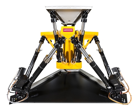 The patented 8-DOF (degrees of freedom) Moog test system is comprised of a 6-DOF Electric Simulation Table with an innovative extra 2-DOF tilt table on top for large angular pitch and roll motions up to 30 degrees. The total pitch and roll angles of the test system exceed 50 degrees.