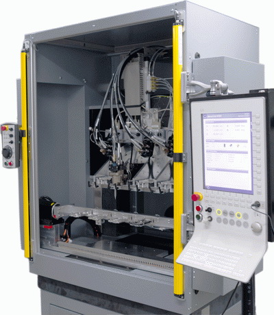 The AJ 45X is a compact, high throughput, mass production system for 3D Printed Electronics. With 4 Aerosol Jet® print heads and 5 axes of simultaneous motion, rapid parallel processing of multiple parts is achieved. Designed specifically for 24/7 operation the 45X is robustly constructed for minimal maintenance operation. Linear motor and encoder technology guarantee maximum printing accuracies (+/- 5µm) even at high-dynamic feed rates. High speed (< 1ms) motion control and simultaneous calculation for axis positioning enables rapid and consistent print speeds enabling optimised print cycle times. "Look Ahead" path control with jerk compensation ensures harmonious movement and sinusoidal accelerations that guarantee printing accuracy.