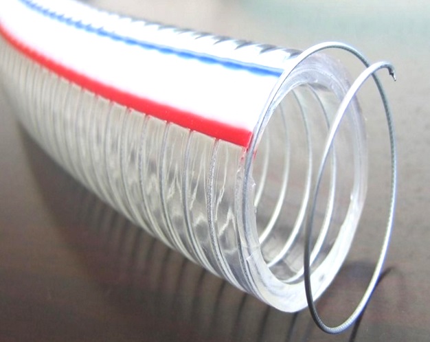 Structure: CLEAR PVC hose with embedded steel wire reinforcement.