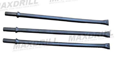 Integral Drill Steel is used by a hand held drill machine in Underground mining and for small hole drilling, equipped with small power rock drills, like air leg rock drills, hand held rock drills, etc. It can reduces the expense of impact energy, improves the drilling speed and efficiency, also it can be used for drilling bore hole diameter from 24mm to 44mm usually. Regarding Integral drill steels, the quality of a steel material and a tungsten carbide is very important to get good drilling performance.